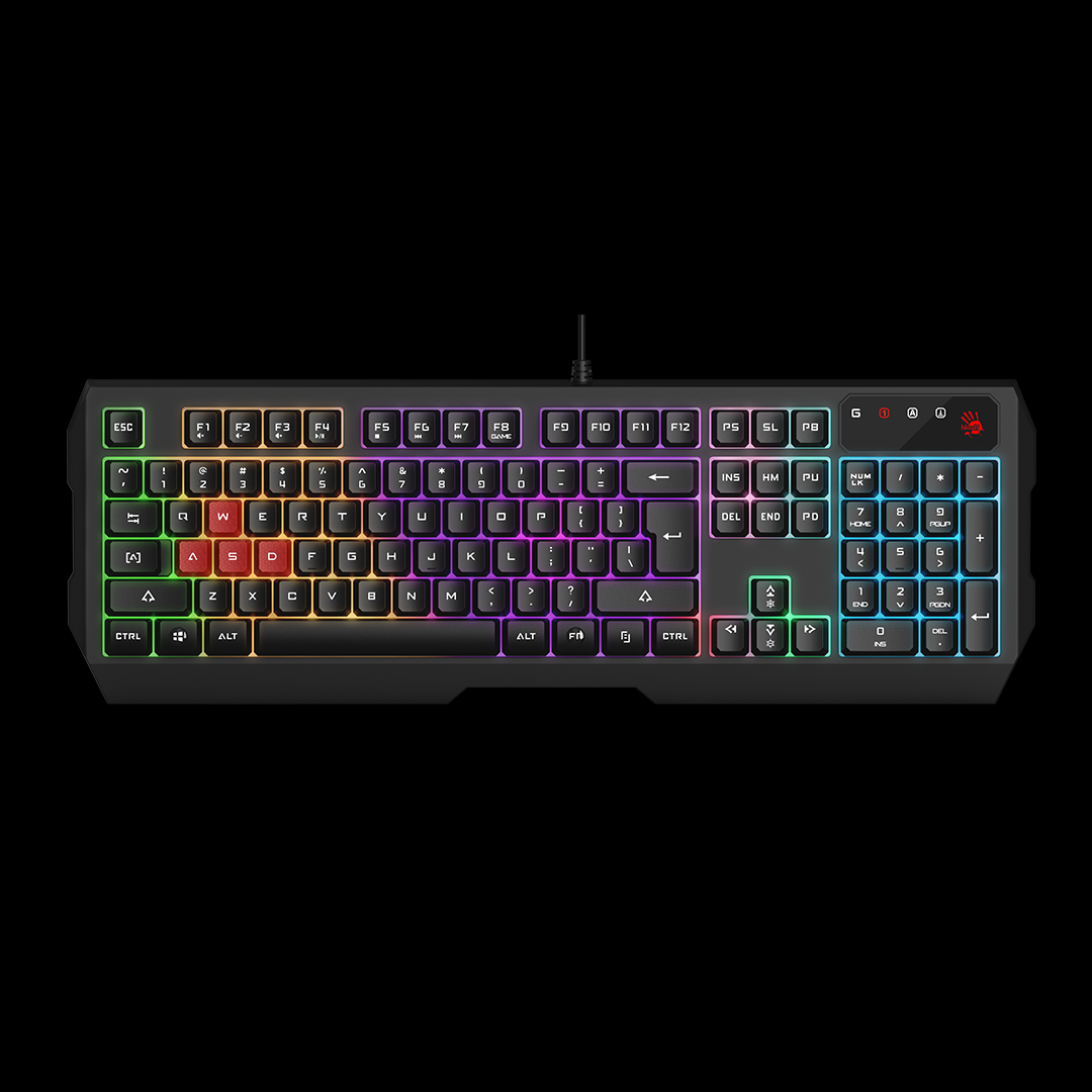 The A4TECH Bloody B135N Neon Backlight Gaming Keyboard features Adjustable Backlights, a Report Rate of 1000 Hz, Game Mode, Multimedia Hot-Keys, and Screw Enhanced Space-Bar. This Keyboard has FN + F12 ( Solid / Breathing / Off ) Brightness: FN + Up button/ Down button In this Keyboard, Its full report rate of 1000 Hz gives a faster and more timely response. This keyboard comes with a Game mode option, and pressing Fn+F8 disables "Window" keys to avoid interruptions during a game session, as well as an anti-slippery silicon lift that keeps the keyboard from sliding or vibrating during a game session. These Exclusive Bloody keyboards have a one-of-a-kind design, high-quality precision, and cutting-edge technologies. It is at the top because it focuses on details, convenience, and ergonomics. The Bloody keyboard, as the cornerstone of your gaming setup, is meant to give absolute satisfying control straight to your fingers. This Keyboard has System Requirements for Windows 7/ 8 /8.1 / 10 /11, In gaming conditions. The A4TECH Bloody B135N Gaming Keyboard comes with a 1-year of warranty.